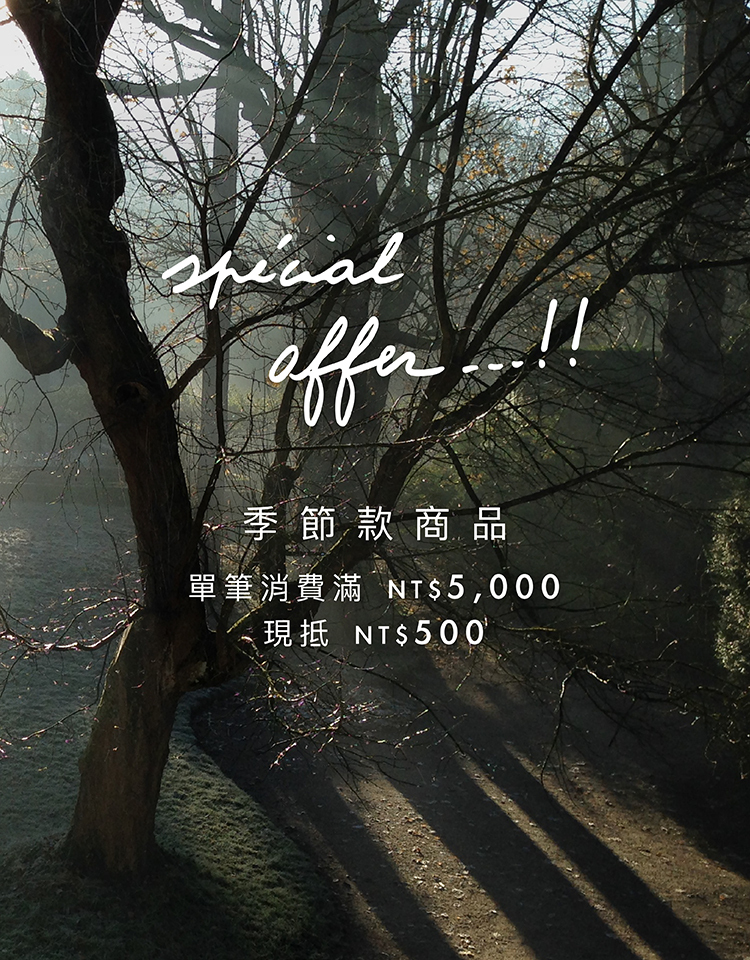 基本款/季節款商品 單筆消費滿NT$5000現抵NT$500